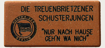 Fanstein – das PrinzipGeben Sie Ihren Fans und Freunden die Möglichkeit, mit dem Erwerb eines Original Fansteins ihre Treue und Loyalität zum Verein auf einzigartige Weise zu verewigen. Die Erlöse fließen Ihrem Verein zu und ermöglichen Ihnen damit die Verwirklichung Ihrer Träume, von bislang noch nicht realisierten Bauvorhaben über die Unterstützung der Jugendarbeit bis hin zur Finanzierung von Fanprojekten. Jeder Stein ist einzigartig, aber doch Teil des Ganzen! Was gibt es Besseres für Ihre Fans, Unterstützer und Sponsoren als die wirklich bleibende Nennung ihres Namen in Verbindung mit Ihrem Verein auf Flächen in unmittelbarer Nähe Ihres Stadions oder Ihrer Spielstätte? Eben! Und Ihnen als Verein eröffnen sich damit große Chancen zur Erzielung zusätzlicher Einnahmen, die Ihnen die Umsetzung Ihres Traumvorhabens tatsächlich ermöglichen werden. Erhöhen Sie mit einem Fanstein-Projekt die Bindung Ihrer Fans, Förderer und Sponsoren an Ihren Verein und schaffen Sie mit den hierfür eingehenden Mitteln die finanziellen Voraussetzungen für die Erfüllung Ihres Traumes. ![]() Nie war es so schön zu zeigen, wessen Fan man ist! Jeder Original Fanstein ist ein Unikat, auf dem Namen und ganz persönliche Botschaften enthalten sind. Die Verlegung dieser Liebes- oder Sympathieerklärung „in Stein“ erfolgt auf repräsentativen Gehwegen und Plätzen oder auch Wänden am beziehungsweise in der Nähe Ihres Stadions oder Ihrer Spielstätte. Aber natürlich auch an allen anderen Orten, die Ihnen und Ihren Fans besonders am Herzen liegen. Unser Original Fanstein ist ein lasergravierter Klinker aus deutscher Produktion mit - bis zu 3 Zeilen Text und/oder Grafik bei jeweils max. 18 Zeichen je Zeile - beliebige Grafiken nach Ihren Wünschen - freie Auswahl des Zeichensatzes - alle Abbildungen in hoher Schärfe und ausgezeichneter Qualität - beste Witterungs- und Alterungsbeständigkeit unter Einhaltung der gängigen deutschen und EU-Richtlinien und bei - nicht zuletzt - kurzen Lieferzeiten. (Andere Materialien auch für Innenbereiche bspw. Keramik sind in Vorbereitung.) Wenn Sie nach einer Erfolg versprechenden Fundraising-Idee suchen, haben Sie mit unserem Original Fanstein das geeignete Produkt gefunden. Fordern Sie jetzt Ihre persönliche Musterkalkulation an! |
